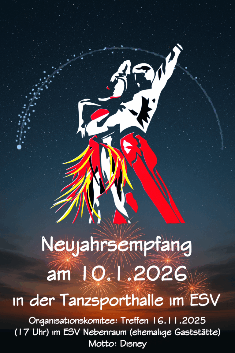 Um für den Neujahrsempfang am 10.1.2026 einen schönen Rahmen zu organisieren, laden wir jeden Interessierten zu dem Neujahrsempfang-Komitee Treffen am 16.11.2025 um 17:00 Uhr ein. Das Treffen findet im ESV Nebenraum statt (in der ehemaligen Gaststätte).